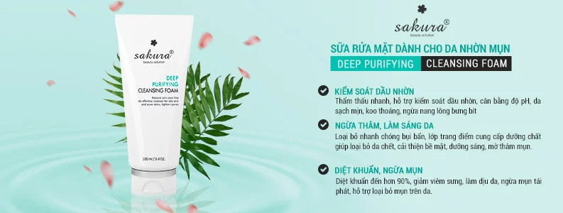 Bước 1: Sữa Rửa Mặt Dành Cho Mụn Sakura