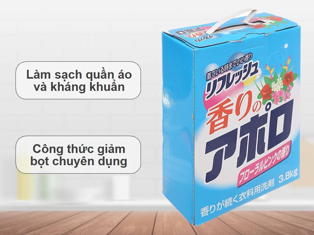 Bột giặt hương hoa Kaori No Appolo 3.8kg là sản phẩm giặt tẩy chất lượng cao, phù hợp cho nhu cầu sử dụng hàng ngày của gia đình. Với công thức làm sạch hiện đại kết hợp hạt năng lượng kép, sản phẩm giúp đánh bay vết bẩn nhanh chóng, đồng thời hỗ trợ loại bỏ vi khuẩn và mùi hôi trên quần áo.