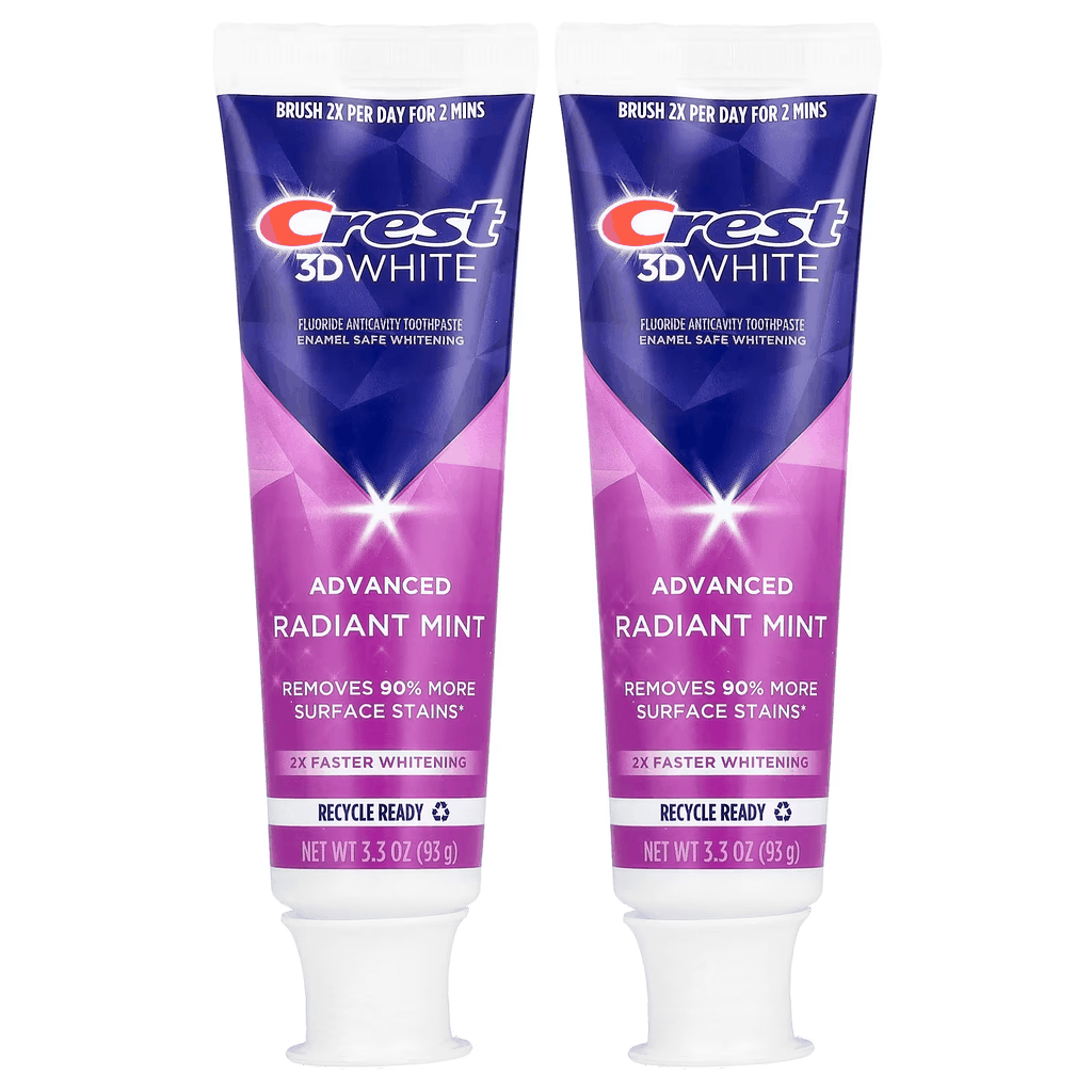 Crest 3D White Advanced Radiant Mint Toothpaste (Bộ 2 tuýp 3,3 oz) – Làm trắng rạng rỡ & bảo vệ men răng