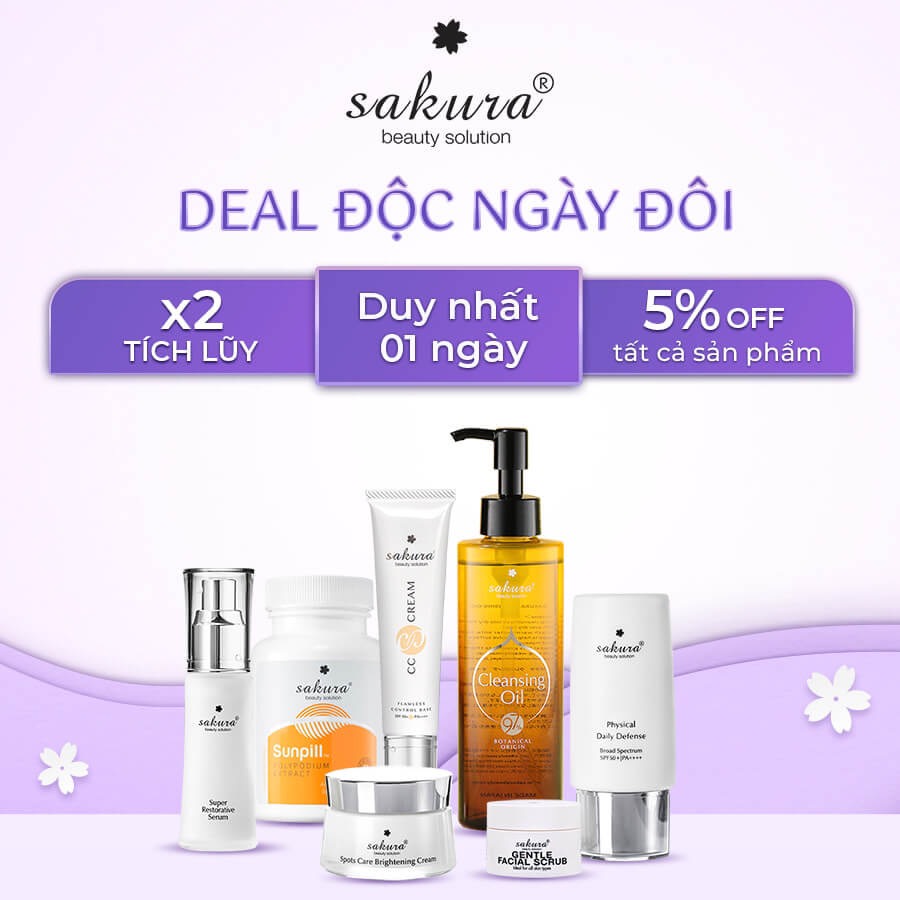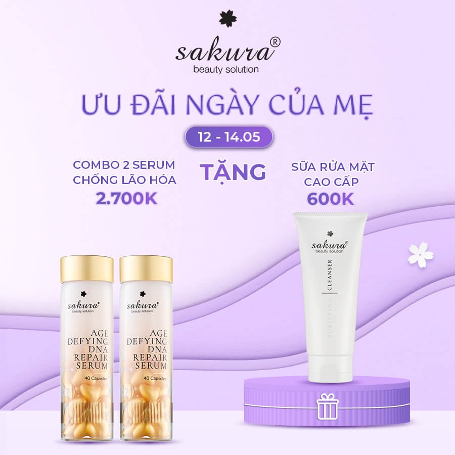 MUA 2 TẶNG 1: Tặng 01 Sữa rửa mặt cho da dầu mụn Sakura Purifying Cleanser 600K khi mua 02 Serum phục hồi DNA trẻ hoá da.