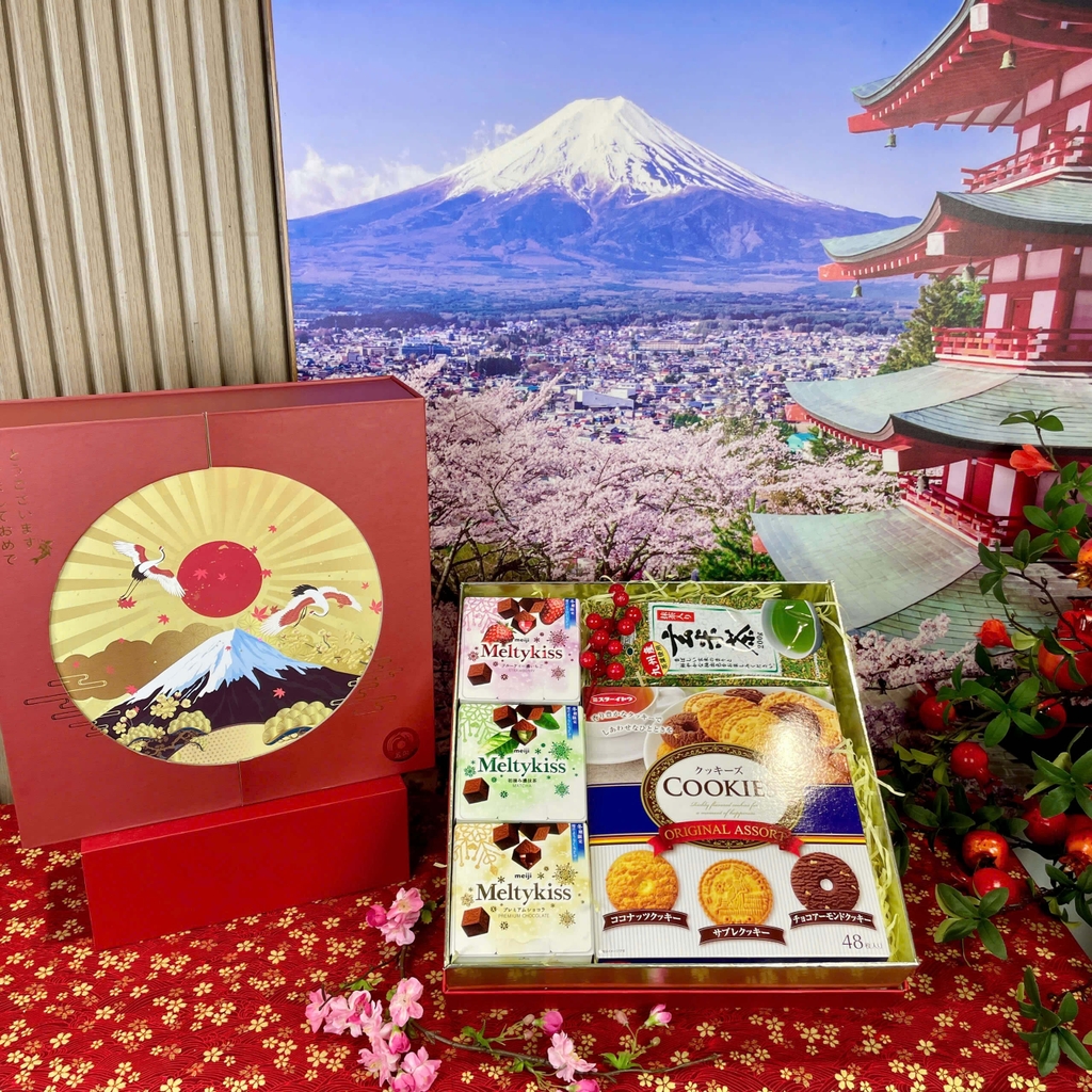 - Hộp Quà Tết Nhật Bản 2026 – SUISEN 2653 mang tinh thần thanh nhã của hoa thuỷ tiên: khởi đầu tươi sáng, tinh tế mà ấm áp. Set quà gồm Cookies Original Assort 48 chiếc giòn thơm; Trà xanh gạo lứt rang 200 g thanh dịu, bùi cốm rang; combo Socola tươi Meltykiss 3 vị (nguyên bản – dâu tây – matcha) tan mịn chuẩn Nhật. Tất cả được trình bày trong hộp quà và túi đựng cao cấp, nổi bật khi biếu tặng dịp Tết, tiếp khách văn phòng, tặng gia đình – đối tác.