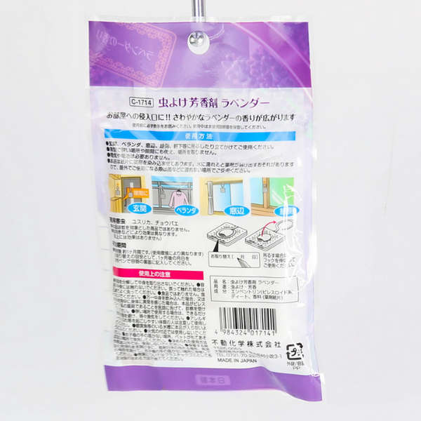 Miếng treo thơm phòng hương lavender có nhiệm vụ xua đuổi côn trùng, đặc biệt là ruồi và bọ. Sản phẩm giúp ngăn chặn chúng khỏi bay vào nhà và mang đến không gian thơm tho dễ chịu.