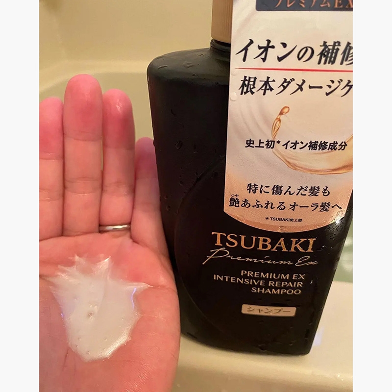 Dầu Gội Tsubaki Premium EX Intensive Repair Shampoo bổ sung Ion phục hồi chuyên sâu giúp nuôi dưỡng và tái cấu trúc từng sợi tóc hư tổn do uốn - duỗi - tẩy - nhuộm, giảm gãy rụng, chẻ ngọn cho mái tóc suôn mượt, mềm mại, vào nếp và bồng bềnh. Lưu lại trên tóc thơm ngát hương hoa trà hòa quyện cùng hoa hồng thanh lịch và tinh tế.