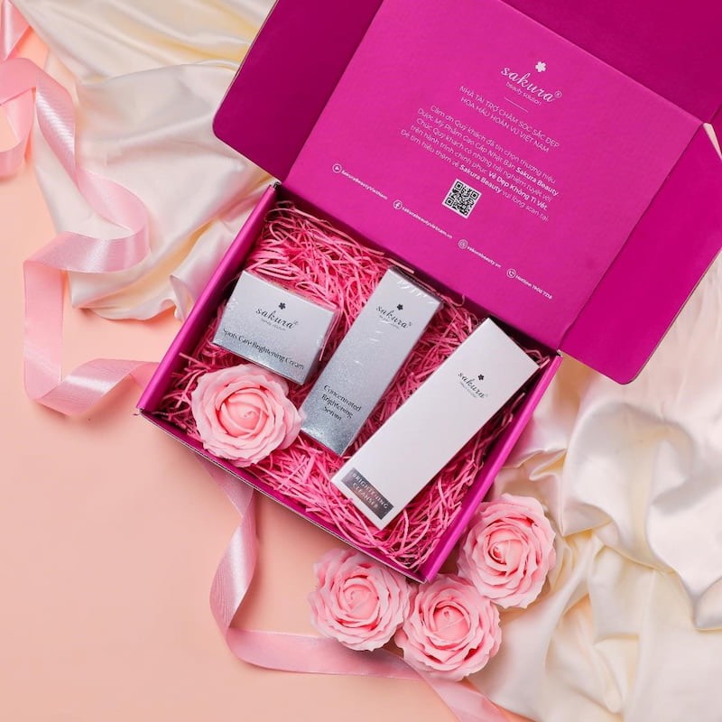 Lưu ý: Chương trình ưu đãi chỉ áp dụng duy nhất 03 ngày 06 - 08.03.2023. Sakura Beauty tặng hộp quà sang trọng gói kèm hoa hồng sáp.