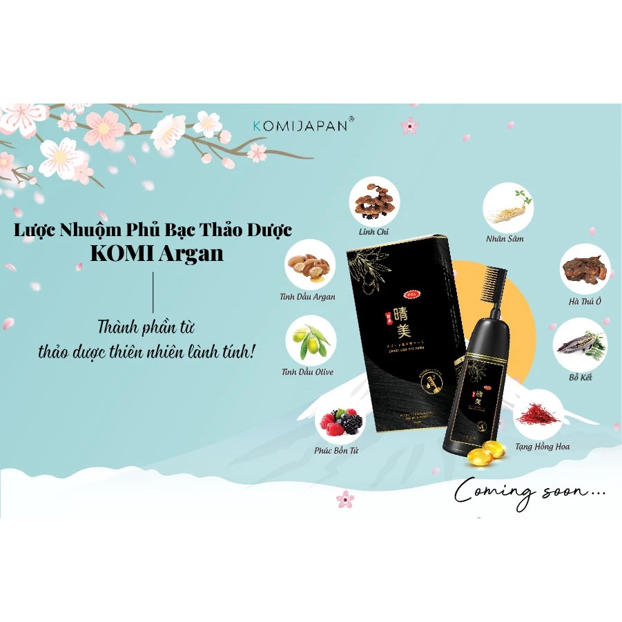 Lược nhuộm phủ bạc thảo dược Komi Argan 350ml là dòng sản phẩm chăm sóc tóc cao cấp đến từ Nhật Bản, giúp che phủ 100% tóc bạc chỉ trong 10 phút mà vẫn giữ được độ mềm mượt, óng ả tự nhiên.