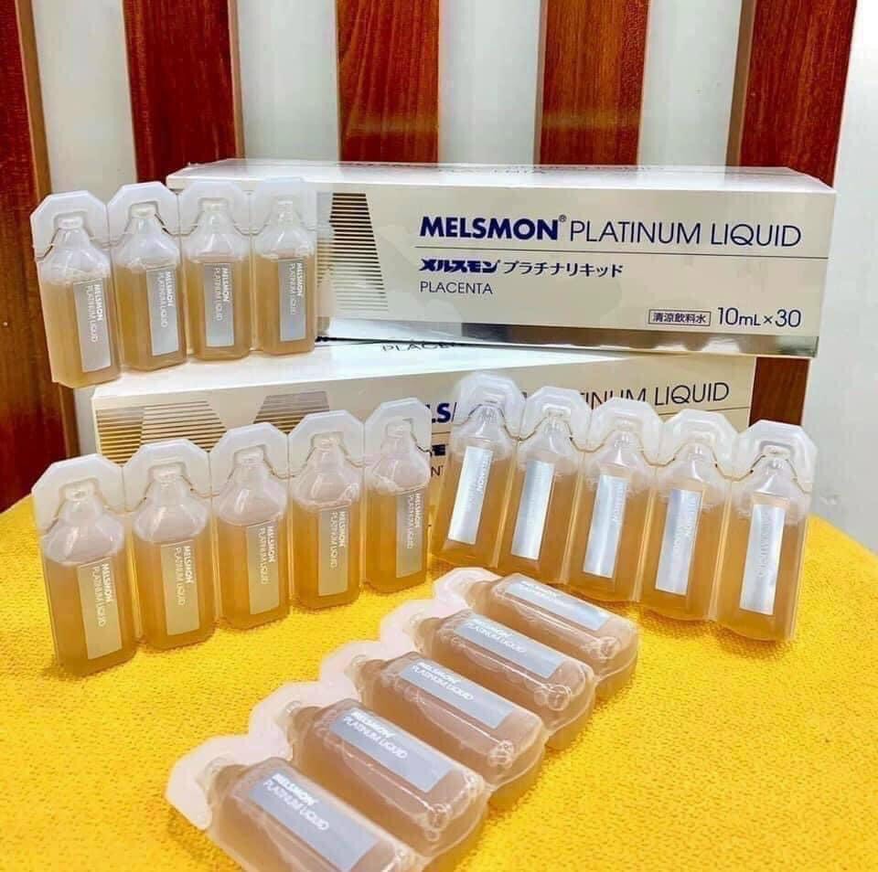Được sản xuất bởi công ty nổi tiếng về tế bào gốc tại Nhật Bản Melsmon. Mỗi hộp thức uống bổ dưỡng Melsmon Platinum Liquid Placenta gồm 30 lọ uống được thiết kế sẵn, phù hợp với những đối tượng bận rộn muốn tìm một phương pháp làm đẹp hiệu quả nhưng tiện lợi.