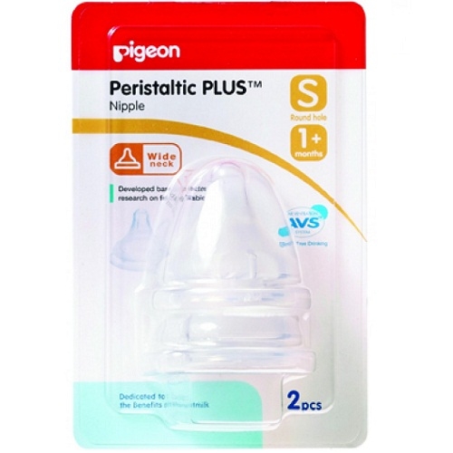 Núm ty silicon Pigeon Plus size S với thiết kế van thông khí AVS thông minh không chỉ điều chỉnh lưu lượng sữa phù hợp với trẻ sơ sinh, chống sặc hiệu quả mà còn giảm tối đa lượng không khí đi vào bụng bé, hạn chế hiện tượng đầy hơi, đau bụng dẫn đến nôn trớ sau khi bú của trẻ. Lỗ ty nhỏ đặc biệt phù hợp với trẻ sơ sinh cùng chất liệu silicon cao cấp, đàn hồi tốt, mẹ yên tâm rằng núm ty tuyệt đối an toàn cho sức khỏe của bé. Núm ty sẽ là sự lựa chọn tốt nhất cho các bé từ 1 tháng tuổi trở lên.