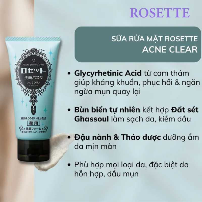 Sữa rửa mặt Rosette Nhật Bản Acne Clear dùng cho da mụn 120g