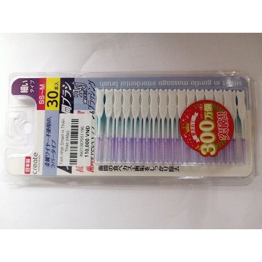 Tăm nha khoa Create Smile & Health là dòng sản phẩm chăm sóc răng miệng cao cấp của Nhật Bản, được thiết kế chuyên dụng giúp làm sạch kẽ răng một cách an toàn và hiệu quả. Với 30 chiếc size SS-M, sản phẩm phù hợp cho nhiều loại kẽ răng, đặc biệt là những người có khe răng hẹp đến vừa.