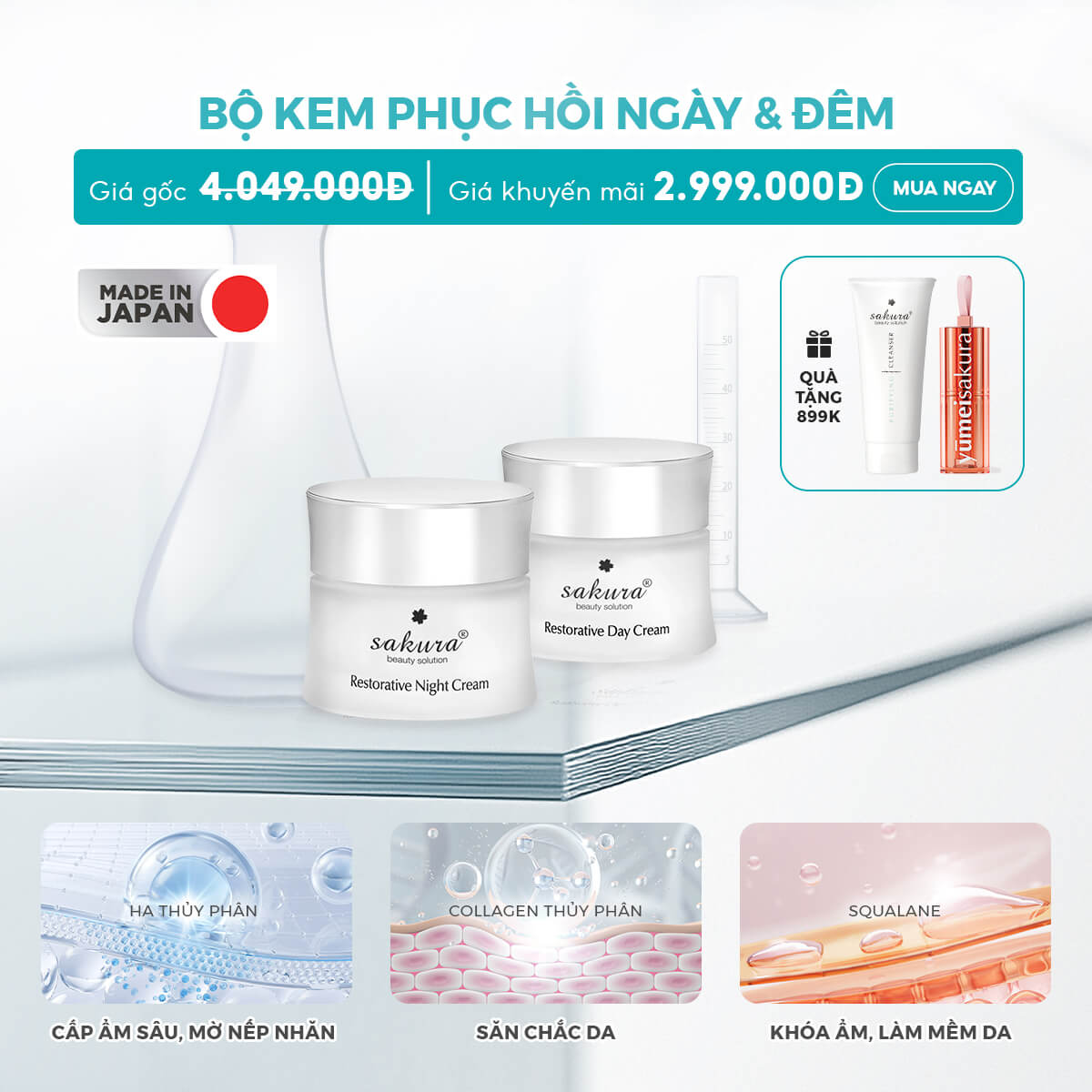 Bộ đôi Sakura Restorative Day & Night Cream chính là giải pháp toàn diện cho chu trình phục hồi làn da đang có dấu hiệu lão hóa.