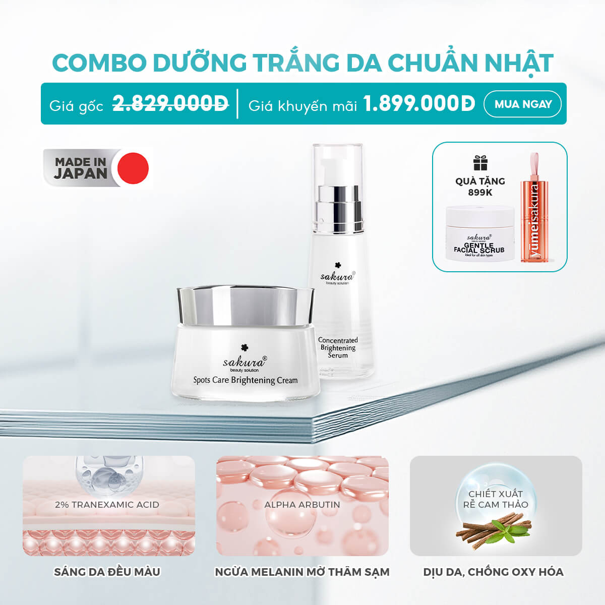 Không có làn da xấu – chỉ có làn da đang cần được chăm sóc đúng cách. Nếu bạn đang gặp tình trạng da sạm màu, không đều màu, vết thâm sau mụn kéo dài không mờ, hãy để bộ đôi dưỡng sáng Sakura Brightening Serum & Cream hỗ trợ bạn lấy lại làn da đều màu, sáng khỏe từ bên trong.