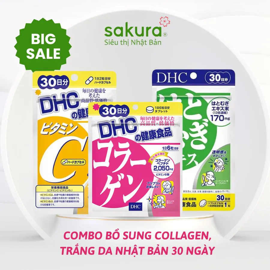 Bộ ba Collagen, Vitamin C và Coix trắng da DHC là sự kết hợp hoàn hảo giữa các sản phẩm thực phẩm chức năng Nhật có cùng mục tiêu: cải thiện sắc tố da, tăng độ đàn hồi và giúp làn da luôn sáng khỏe, đều màu. Đây là combo được phụ nữ Nhật tin dùng như một "bí quyết làm đẹp từ bên trong", nay đã có mặt rộng rãi tại thị trường Việt Nam.