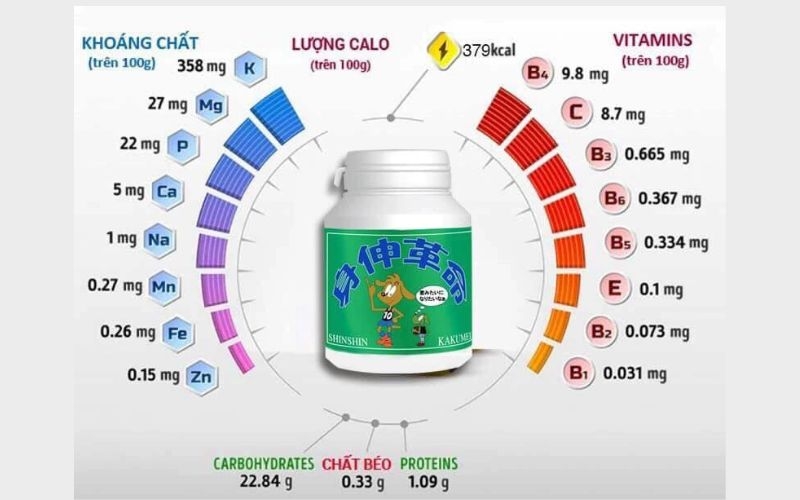 Với thành phần chính bao gồm Spirulina, Natri, Glipid, protein, carbohydrat, và không chứa chất bảo quản, chất tạo màu hay hương liệu tổng hợp, tảo Shinshin Kakumei Nhật Bản lành tính và an toàn cho sức khỏe và sự phát triển của trẻ. Sản phẩm này được chế biến thành viên uống, chỉ cần sử dụng một lần mỗi ngày vào buổi tối trước khi đi ngủ.